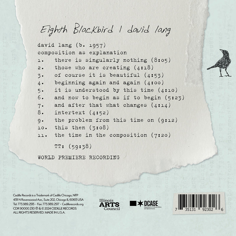 On SaleCedilleLang: composition as explanation / Eighth Blackbird