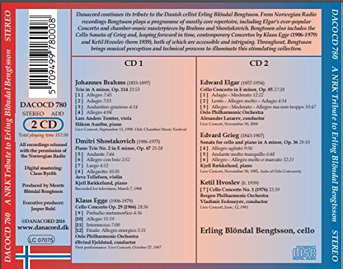 Danacord continues its tribute to the Danish cellist Erling Blöndal Bengtsson. From Norwegian Radio recordings Bengtsson plays a programme of mostly core...