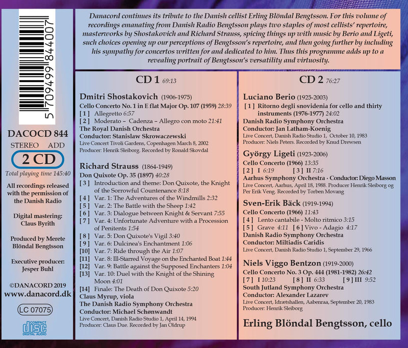 Danacord continues it's tribute to the Danish cellist Erling Blondal Bengtsson. For this volume of recordings emanating from Danish Radio Bengtsson plays...