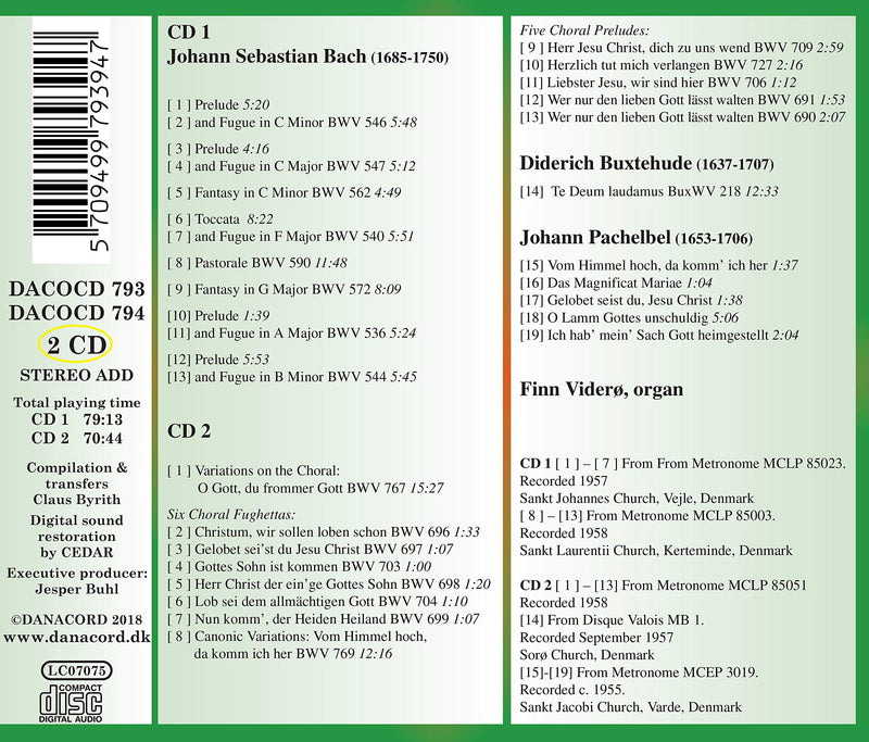 This release is the second volume in the retrospective series featuring undoubtedly the greatest Danish organist ever. Finn Videro made these legendary...