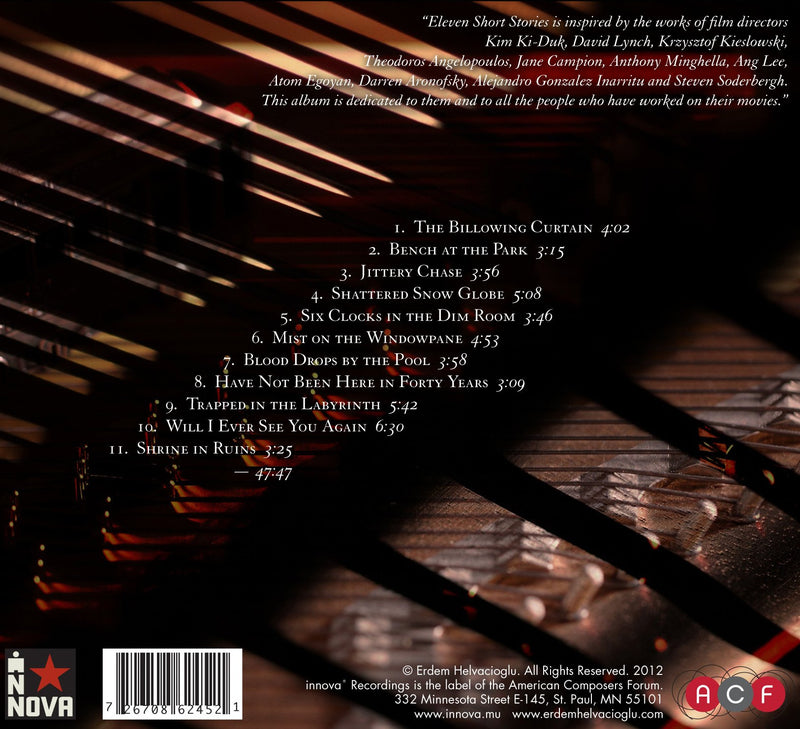 “Eleven Short Stories” is a set of nearly a dozen atmospheric vignettes for prepared piano, paying homage to some of Erdem Helvacioglu’s...