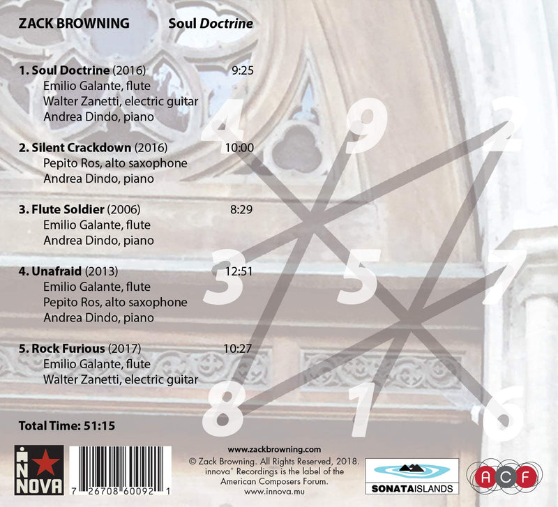 In the album Soul Doctrine, composer Zack Browning employs Chinese magic squares, feng shui, astrology, and historical quotes to construct a spiritual...