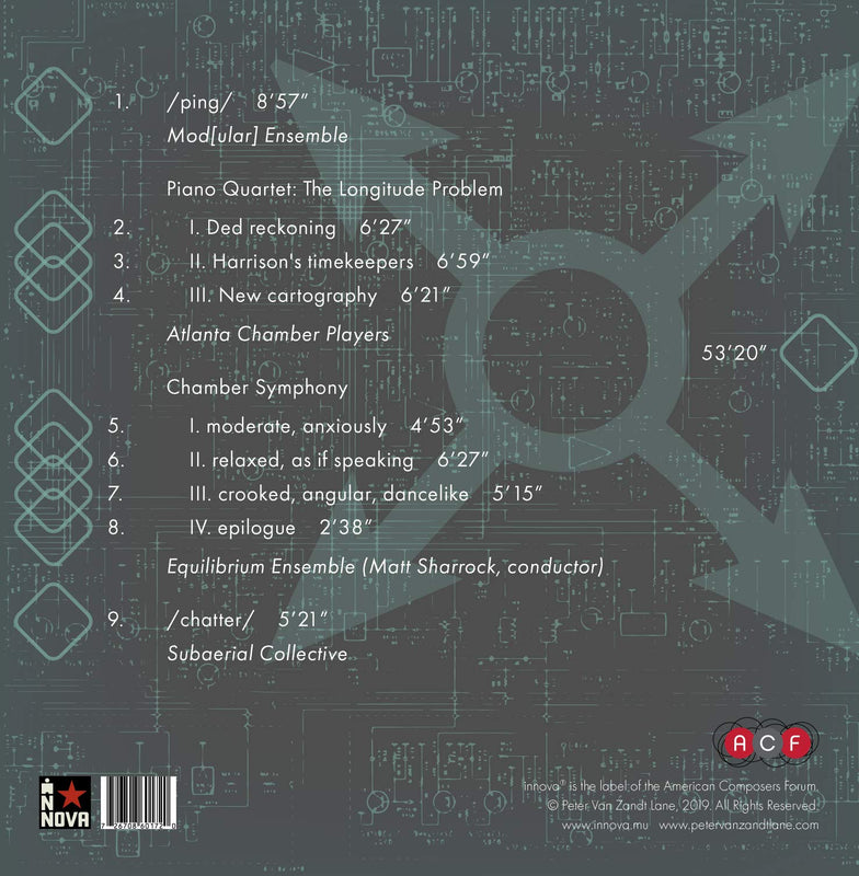 Sonar pulses. Inventing the chronometer. Rotating gears. Vibrating machines. These are the inspirations behind the chamber works on Peter Van Zandt Lane's...