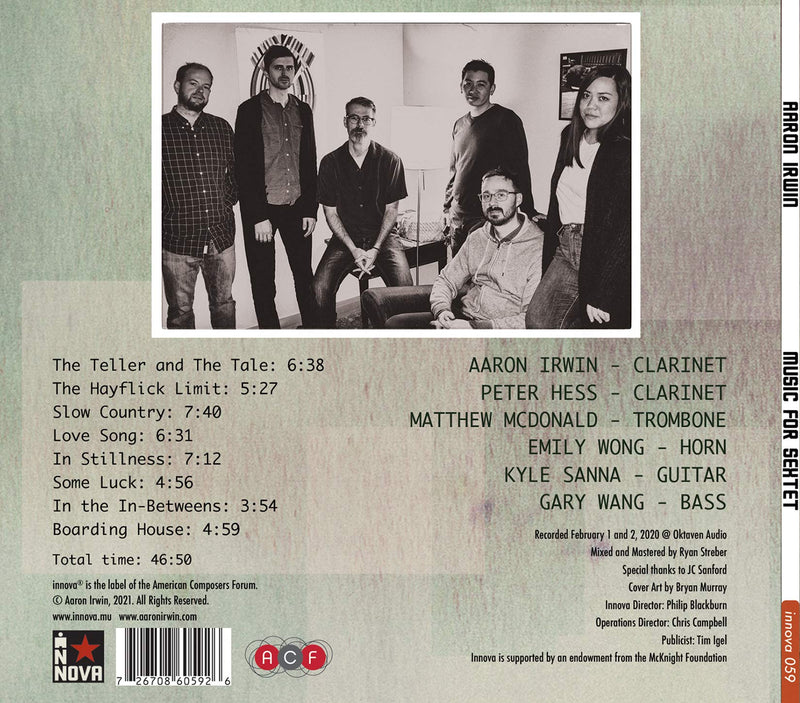 Aaron Irwin releases Music for Sextet on Innova Recordings, his eighth album, as interactions between kaleidoscopic forms and colors, weaving together melancholy,...