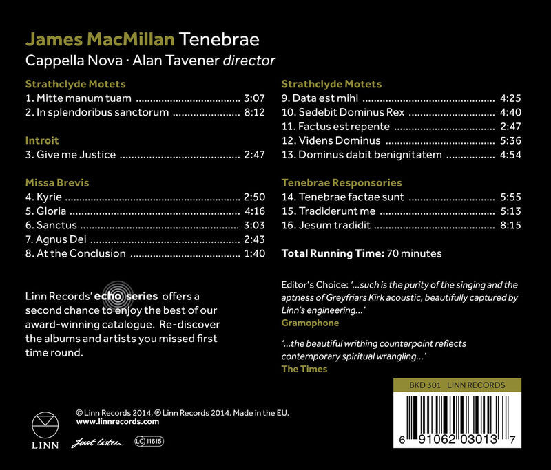 Originally released in 2007, James MacMillan’s ‘Tenebrae’ is now available once again as part of Linn’s ECHO re-issue series. Tenebrae Responsories is...