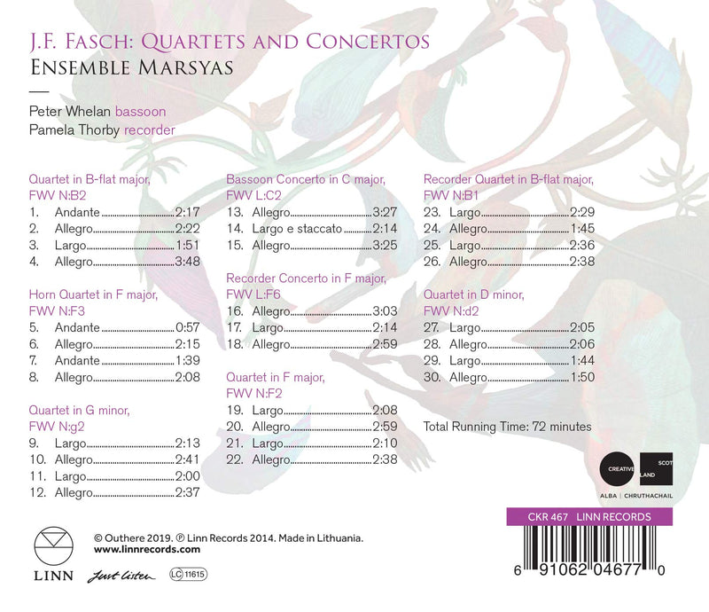Ensemble Marsyas' recording of Johann Fasch's finest chamber music demonstrates why the man and his music were so appreciated in his own...