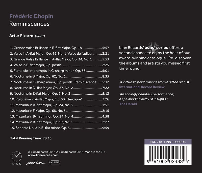 Reminiscences is a collection of Chopin's best loved works for solo piano, each one of personal significance to Portuguese pianist Arthur Pizarro,...
