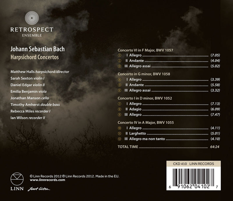 Having wowed the critics with it's 2011 recording of 'J.S. Bach: Easter and Ascension Oratorios' Retrospect Ensemble returns with Bach's Harpsichord Concertos....