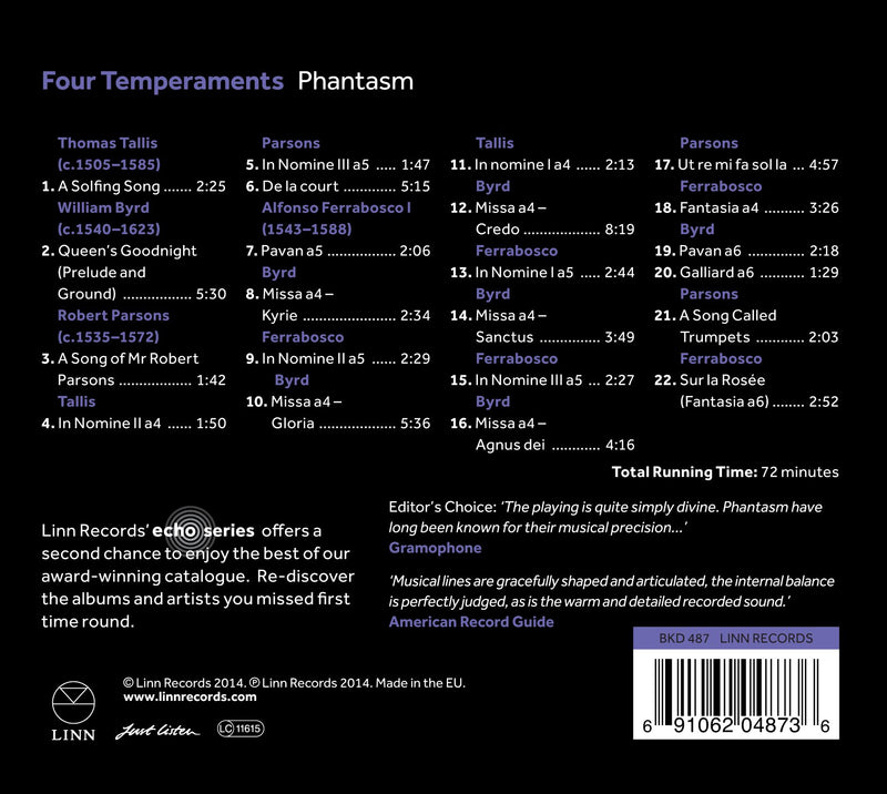 Linn RecordsFour Temperaments: Byrd, Ferrabosco, Parsons, Tallis