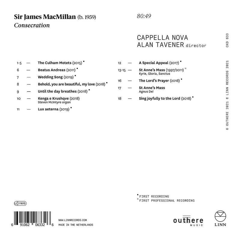 On SaleLinn RecordsMacMillan: Consecration / Tavener, Capella Nova