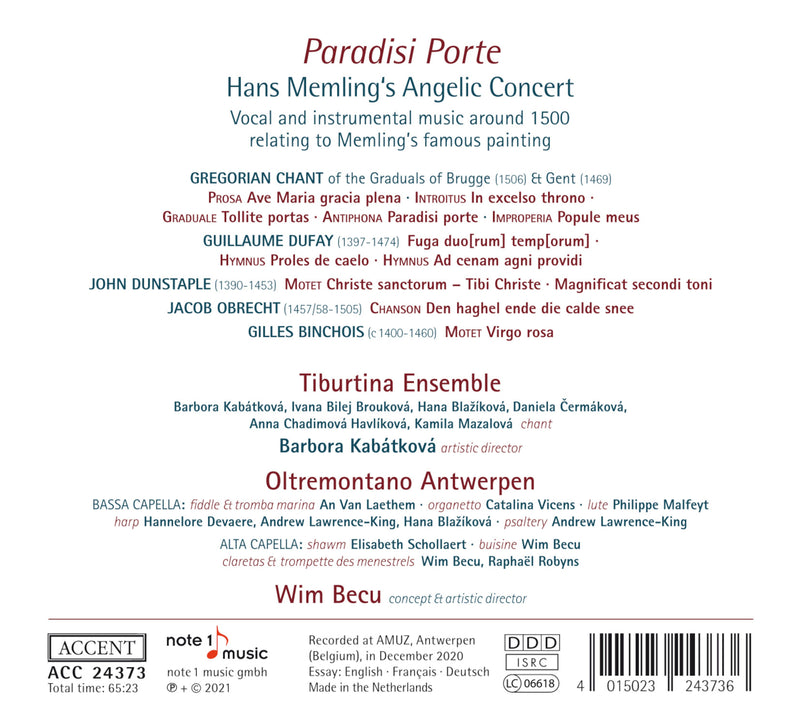 AccentParadisi Porte - Hans Memling's Angelic Concert / Becu, Tiburtina Ensemble, Oltremontano