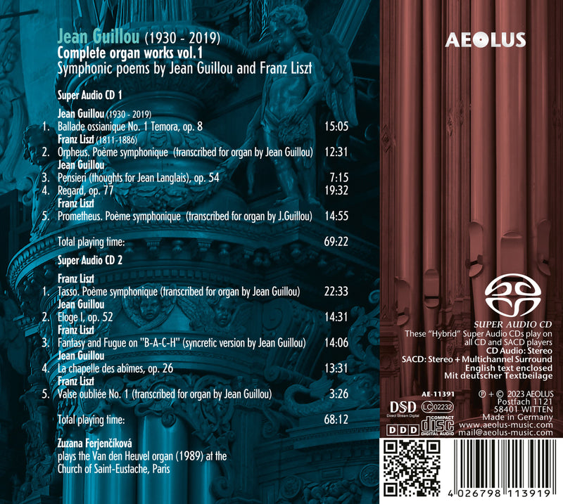 Zuzana Ferjencíková starts her complete recording of Jean Guillou's organ works with AEOLUS with this recording of symphonic poems. The Slovakian concert...