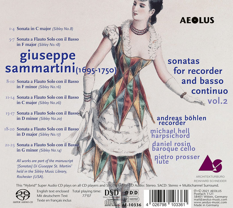 AeolusSammartini: Sonatas for recorder & continuo Vol.2 / Böhlen, Hell, Rosin, Prosser