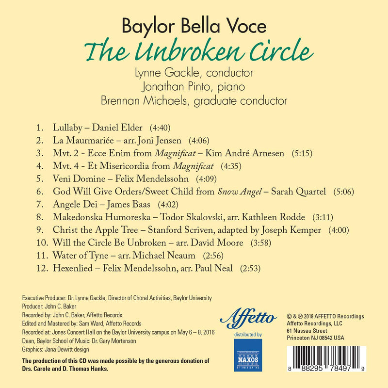Affetto RecordsThe Unbroken CircleBella Voce is the select women's ensemble at Baylor University. Organized in 2011 by Dr. Lynne Gackle, members of Bella Voce are...