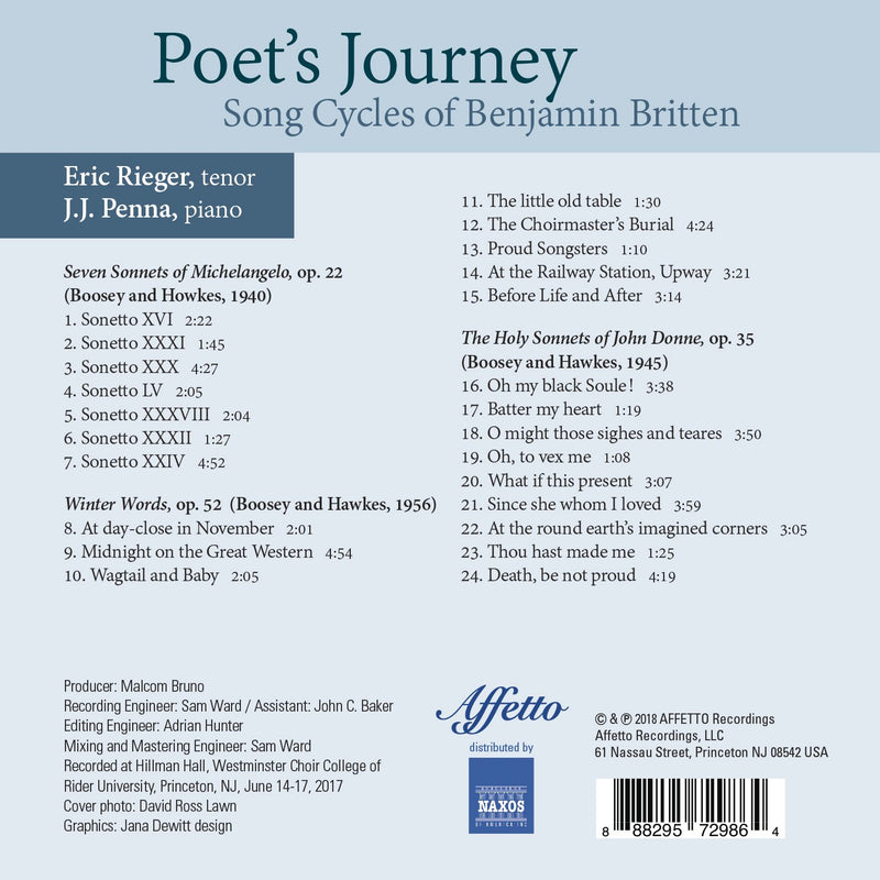 On SaleAffetto RecordsPoet's Journey: Song Cycles of Benjamin BrittenEvery song is a journey: a voyage of the human experience explored through the intersection of poetry and music. In fact, a...