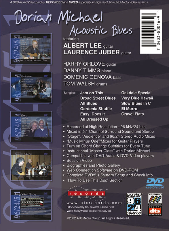 AIX RecordsACOUSTIC BLUESDeemed a "record to die for" by Stereophile magazine, this DVD-Audio/Video disc features blues tunes by Dorian Michael, joined by Albert Lee...