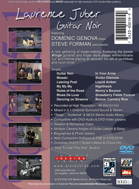AIX RecordsGUITAR NOIRJuber is among the finest acoustic finger style guitarist playing today. The music was recorded in REAL HD-Audio at 96 kHz/24-bit PCM...