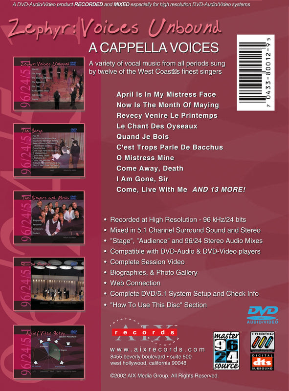AIX RecordsVOICES UNBOUNDThis disc features a collection of a cappella songs from the 15th through the 20th Century. The music was recorded in REAL...