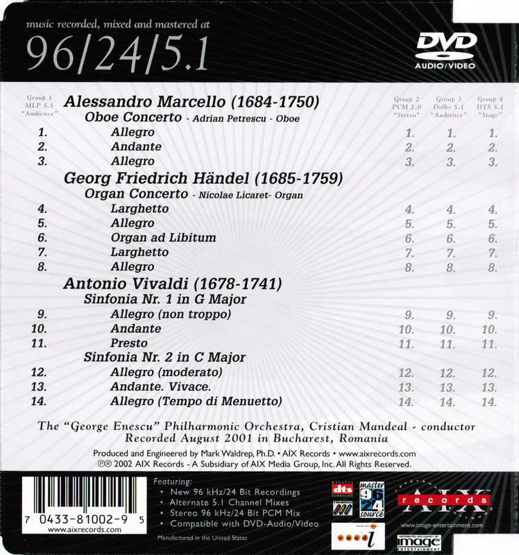 AIX RecordsHandel, Marcello: Concertos; Vivaldi: Sinfonias / Petrescu, Licaret, Et Al