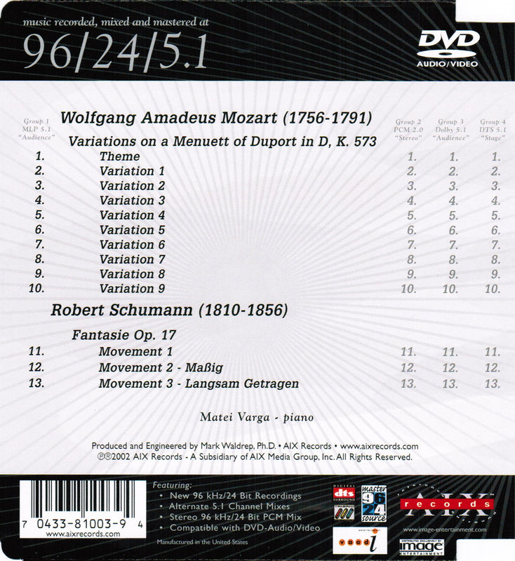AIX RecordsMozart: Variations K 573; Schumann: Fantasie / Matei Varga