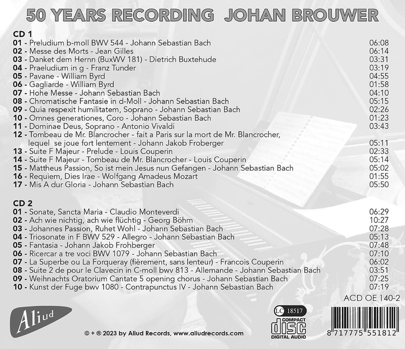 The present double CD is a selection from fifty years of recording. They are recordings of Johann Brower's work as organist, harpsichordist,...