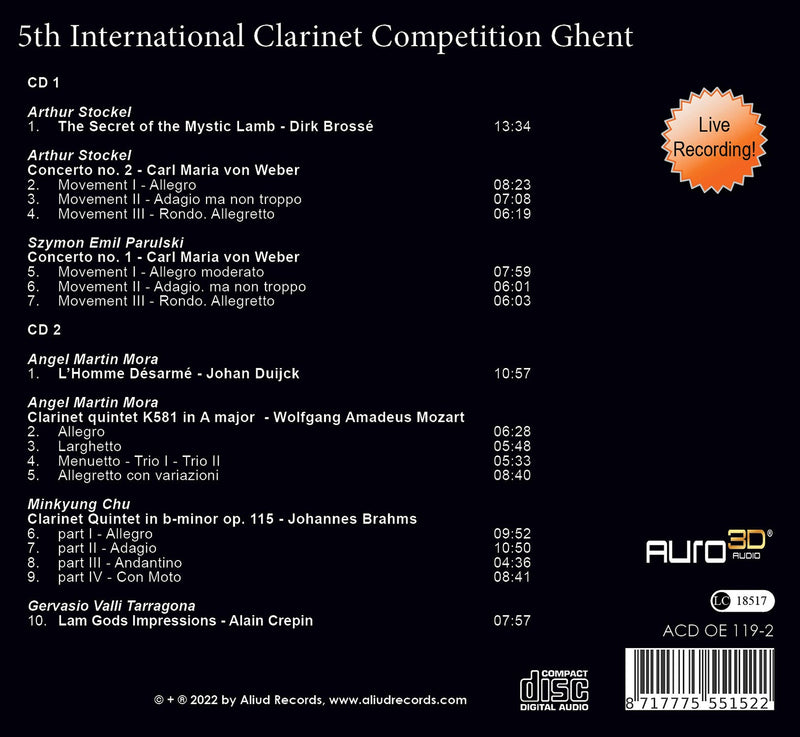 AliudBrossé, Crepin, Duijck: 5th Clarinet Competition Ghent 2022! (2CD + Blu-Ray)