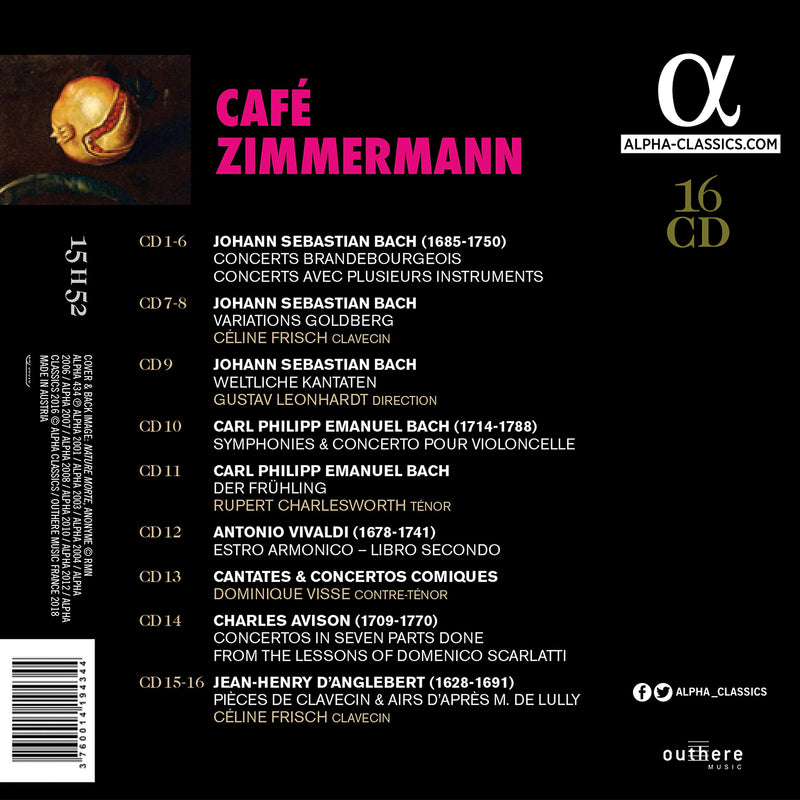 This extensive release collects together all the recordings Café Zimmermann has made for Alpha: the fruit of many years of work, research...