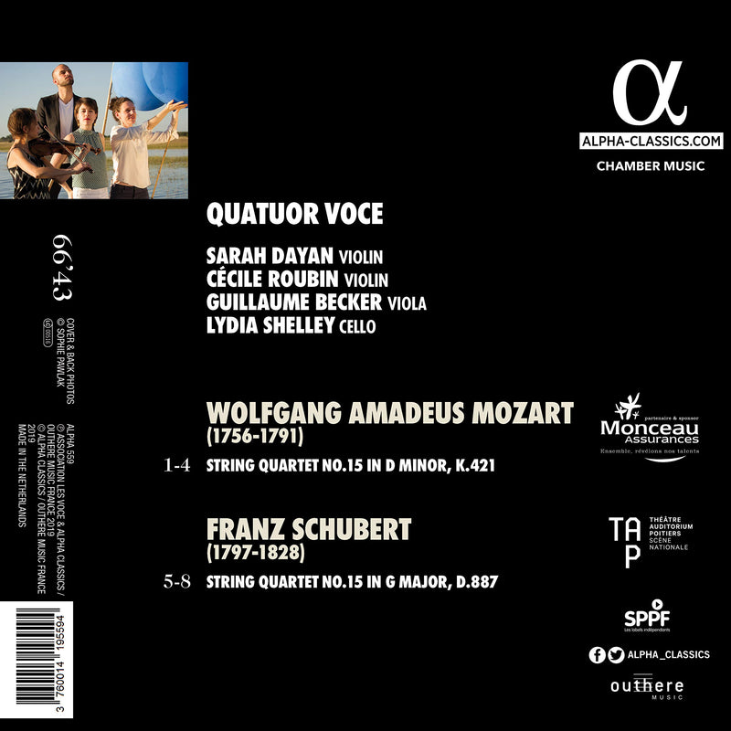 The Quatuor Voce is fifteen years old! To celebrate this anniversary, the four musicians present an album focusing on two composers, Mozart...