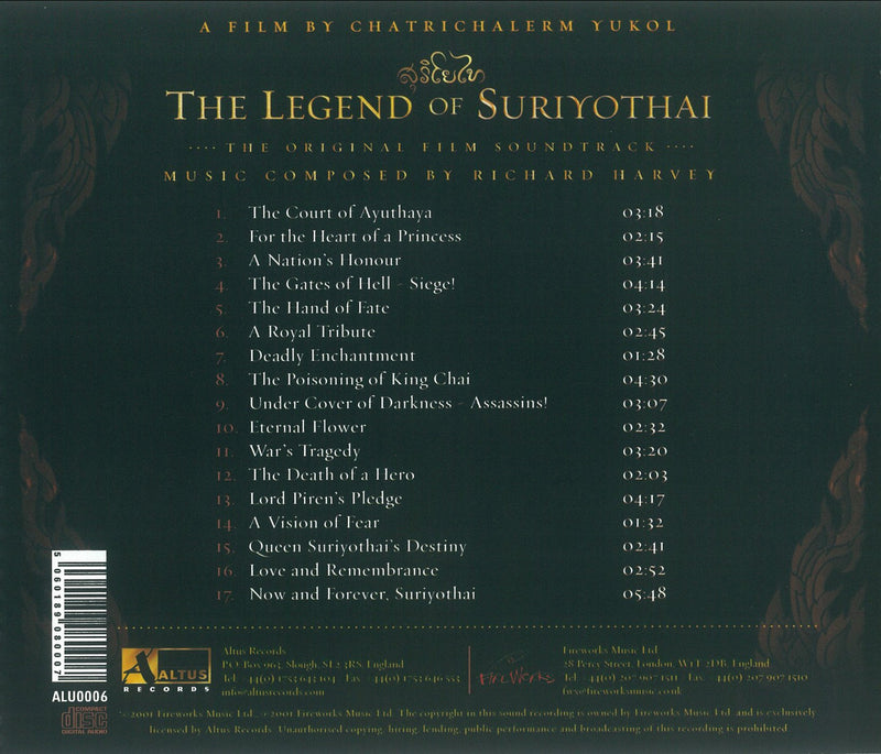 The Legend of Suriyothai is a score written by British composer Richard Harvey for a Thai film by Chatrichalerm Yukol.. The historical...