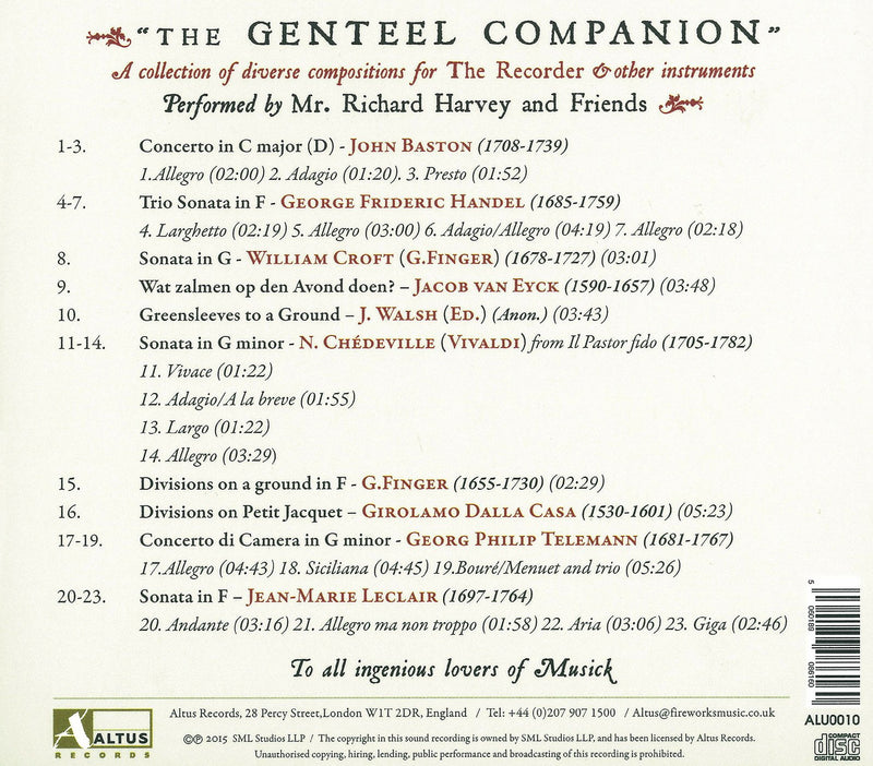 Altus RecordsThe Genteel Companion - A Recorder Recital
