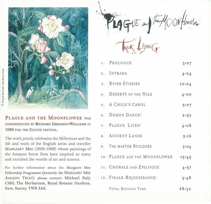 Commissioned by Richard Gregson-Williamson in 1989 for the Exeter Festival, Plague and the Moonflower by Richard Harvey takes the listener into an...