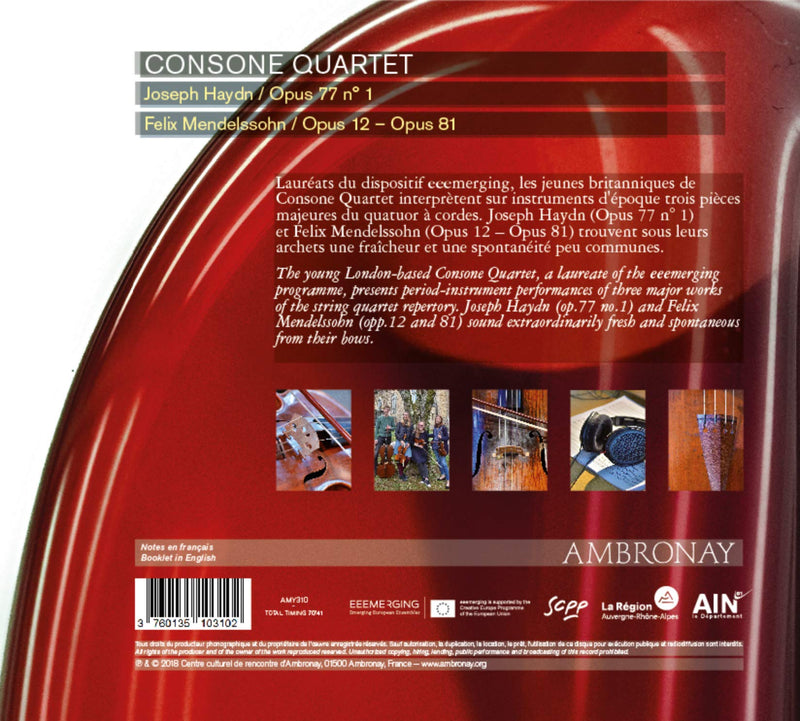 The young London-based Consone Quartet, a laureate of the ‘eeemerging programme,’ presents period-instrument performances of three major works of the string quartet...