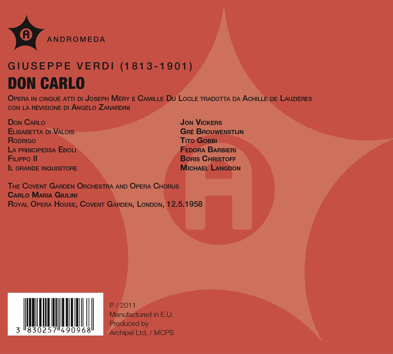 •This legendary 1958, live in London mono recording of Giuseppe Verdi's (1813-1901) Don Carlo makes a welcome return to the active catalogue...