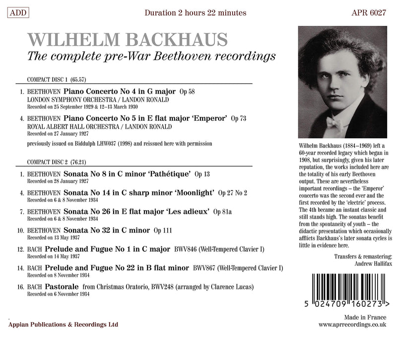 APRWilhelm Backhaus: The Complete Pre-War Beethoven Recordings