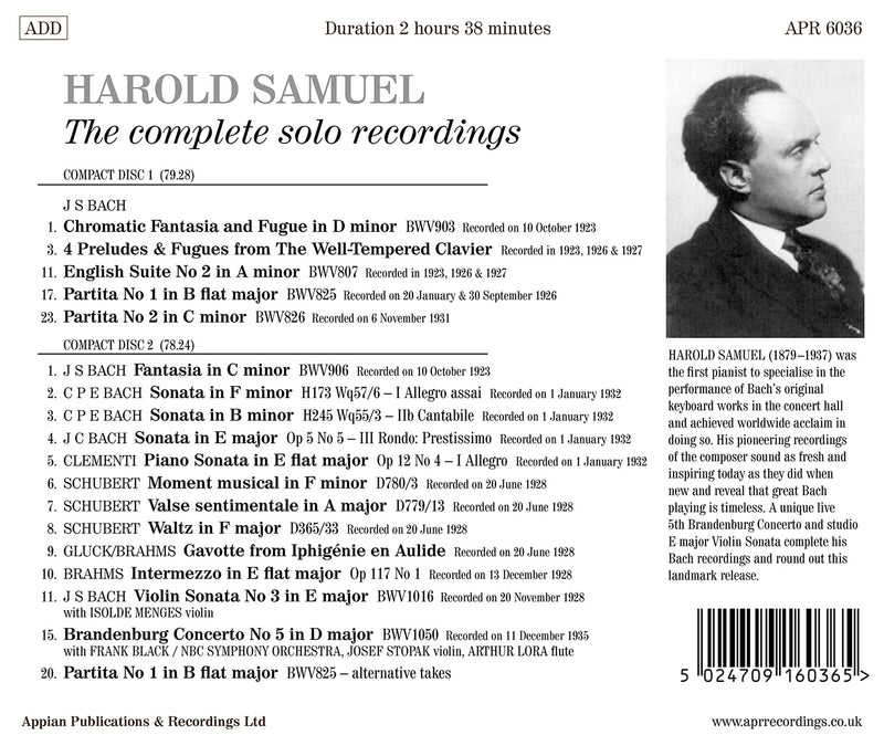 Harold Samuel (1879–1937) was the first pianist to specialize in the performance of Bach’s original keyboard works in the concert hall and...