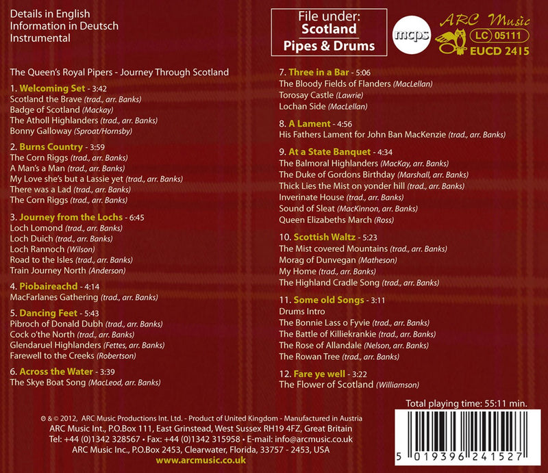 ARC MusicBest of Scottish Pipes and DrumsThe Queen's Royal Pipers present an assortment of instrumental pipe and drum music composed by Scottish musicians, taking you on a journey...