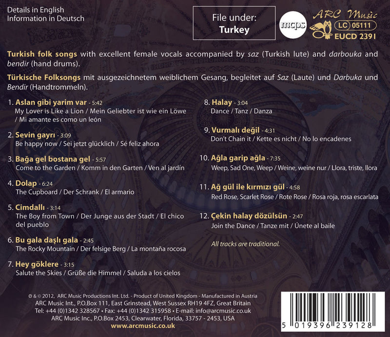 ARC MusicPopular Turkish Folk SongsThe world of Turkish music is opened up before listeners on this lush disc of folk songs by singer Vivienne Doğan-Corringham and...