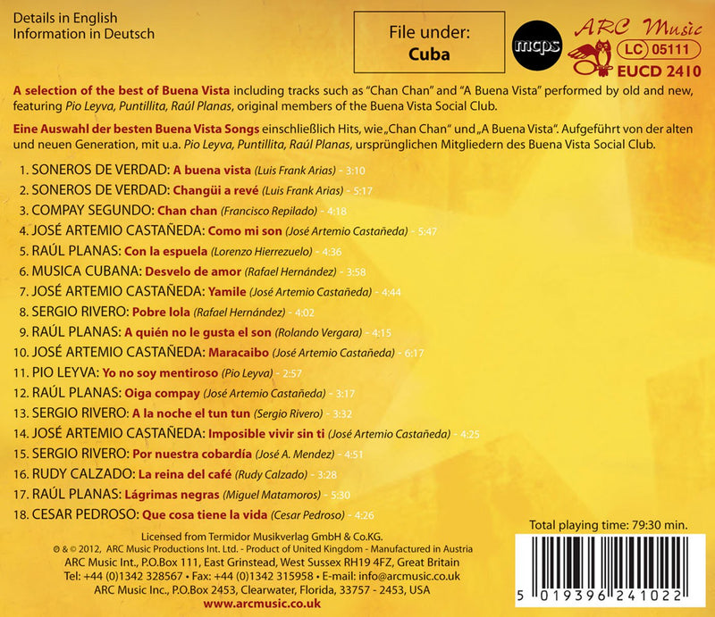 ARC MusicThe Best of Buena VistaFeaturing original members of the Buena Vista Social Club, this selection of the Best of Buena Vista includes tracks such as "Chan...
