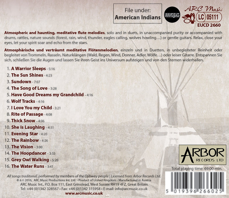 Atmospheric and haunting, meditative flute melodies, solo and in duets, in unaccompanied purity or accompanied with drums, rattles, nature sounds (forest, rain,...