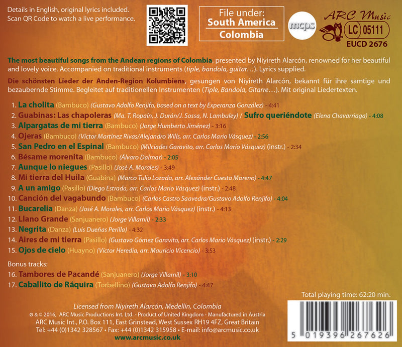 This release features the most beautiful songs from the Andean regions of Colombia, presented by Niyireth Alarcon who is widely known for...