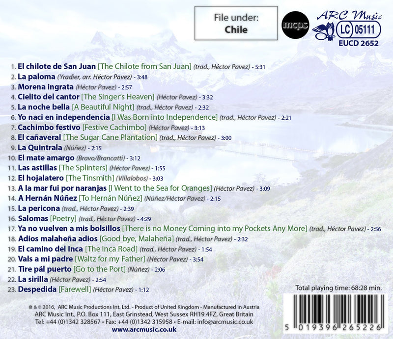 Chile boasts a varied and diverse musical culture, and this album explores all aspects of it, from the native population's ancient folk...