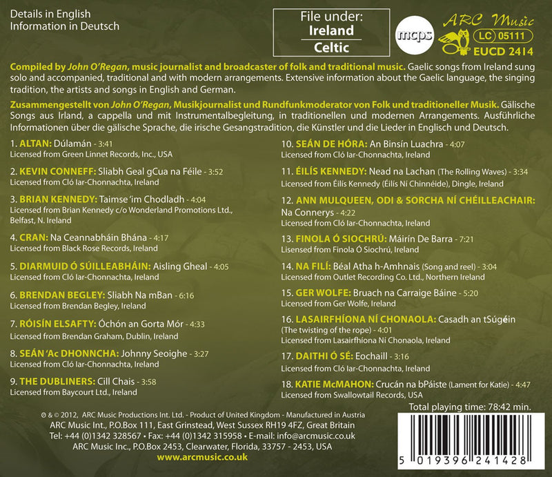 Compiled by John O'Regan, Gaelic songs from Ireland are presented a cappella and accompanied in traditional and modern arrangements. Also included with...