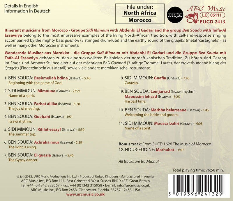 Moroccan musicians Sidi Mimoun and Ben Souda belong to the most impressive examples of the living North American traditions. Call-and-response paired with...