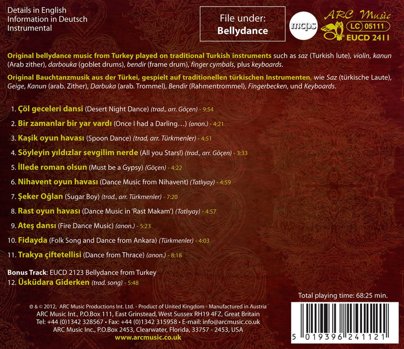 This new release of original belly dance music from Turkey is played on traditional instruments such as the saz, kanun, darbouka, bendir,...