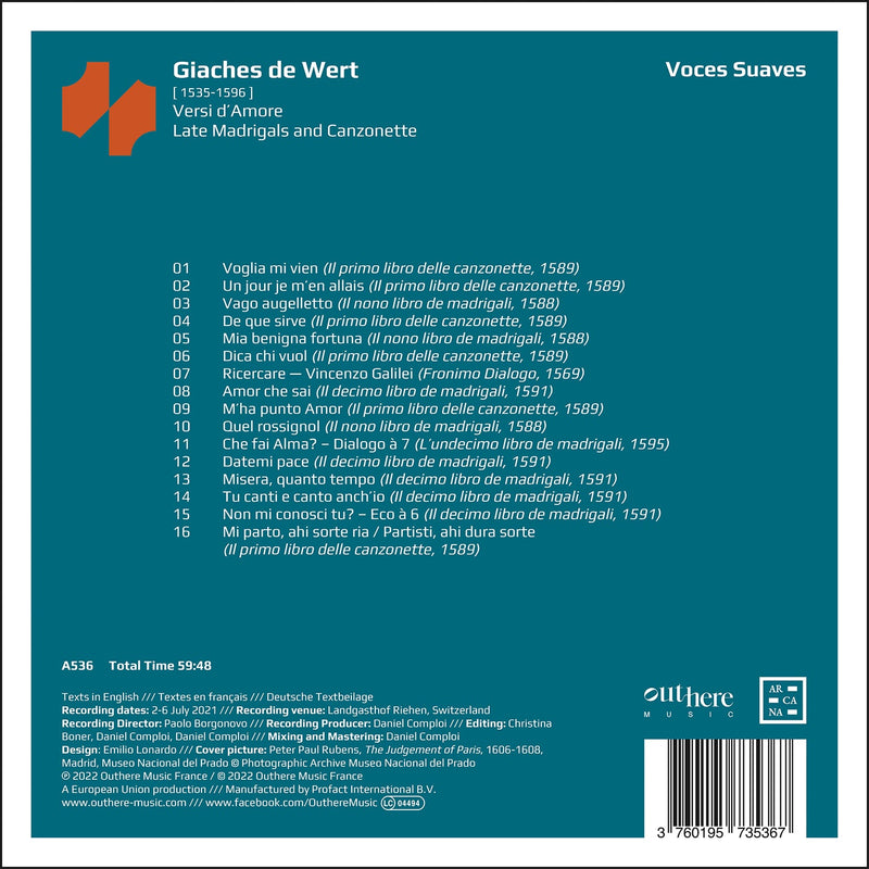 Following three critically acclaimed albums of sacred music, Voces Suaves turns to the most important secular genre of the Renaissance: the madrigal....