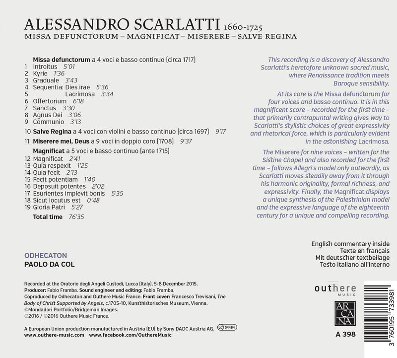 This selection's booklet contains the original Latin text with translations in German, French, Italian and English.Recording information: La congrégation "Sacra Familia" à...