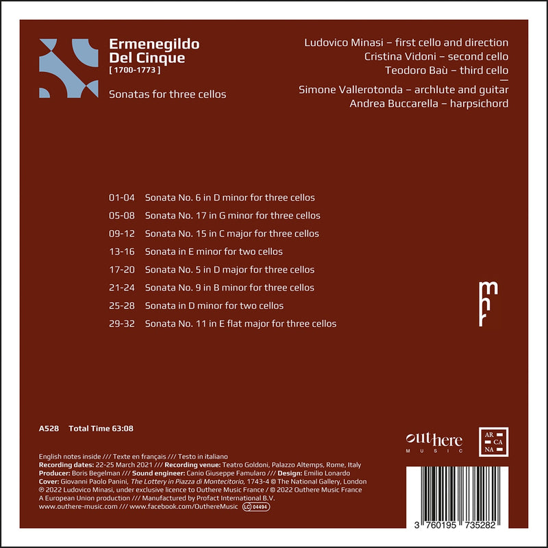 ArcanaDel Cinque: Sonatas for 3 Cellos / Minasi, Vidoni, Baù, Vallerotonda, Buccarella