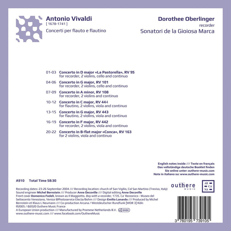 ArcanaVivaldi: Concerti per Flauto e Flautino / Dorothee Oberlinger, Sonatori De La Gioisa Marca