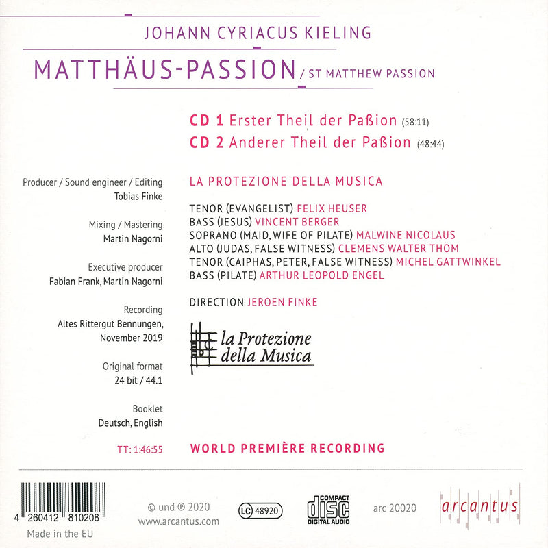 arcantus MusikproduktionKieling: St. Matthew Passion / Finke, La Protezione delle Musica
