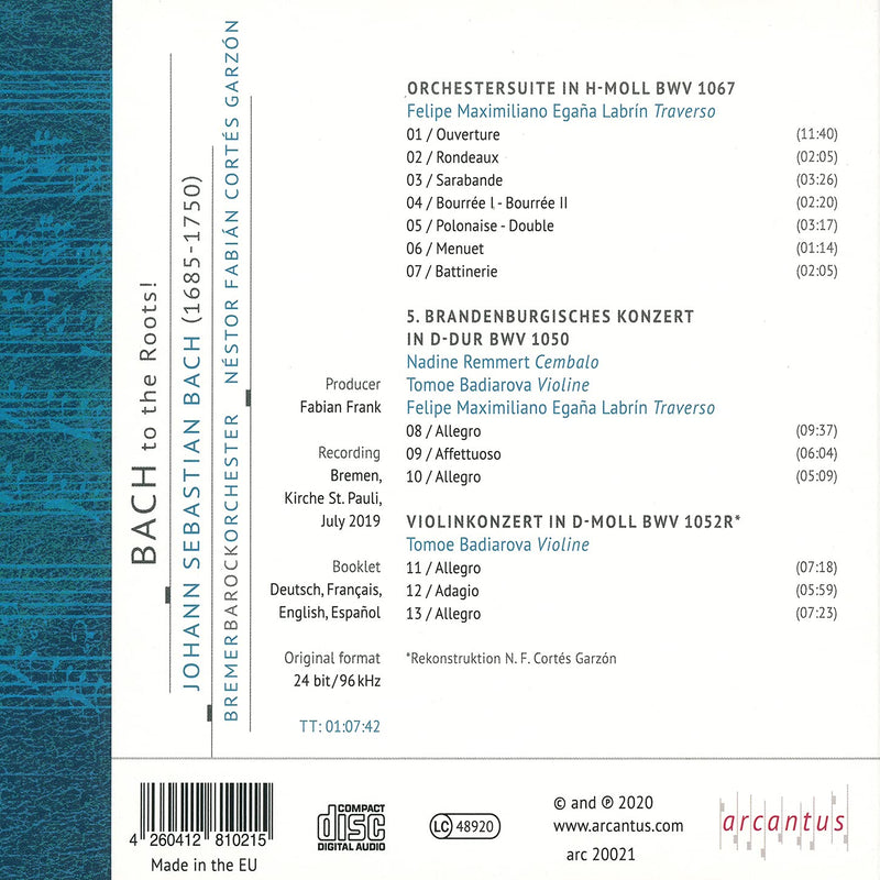 arcantus MusikproduktionBach to the Roots / Garzón, Bremen Baroque Orchestra